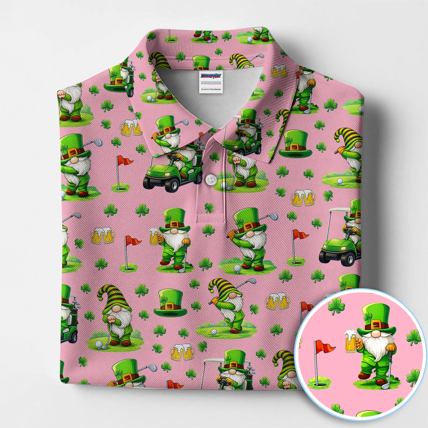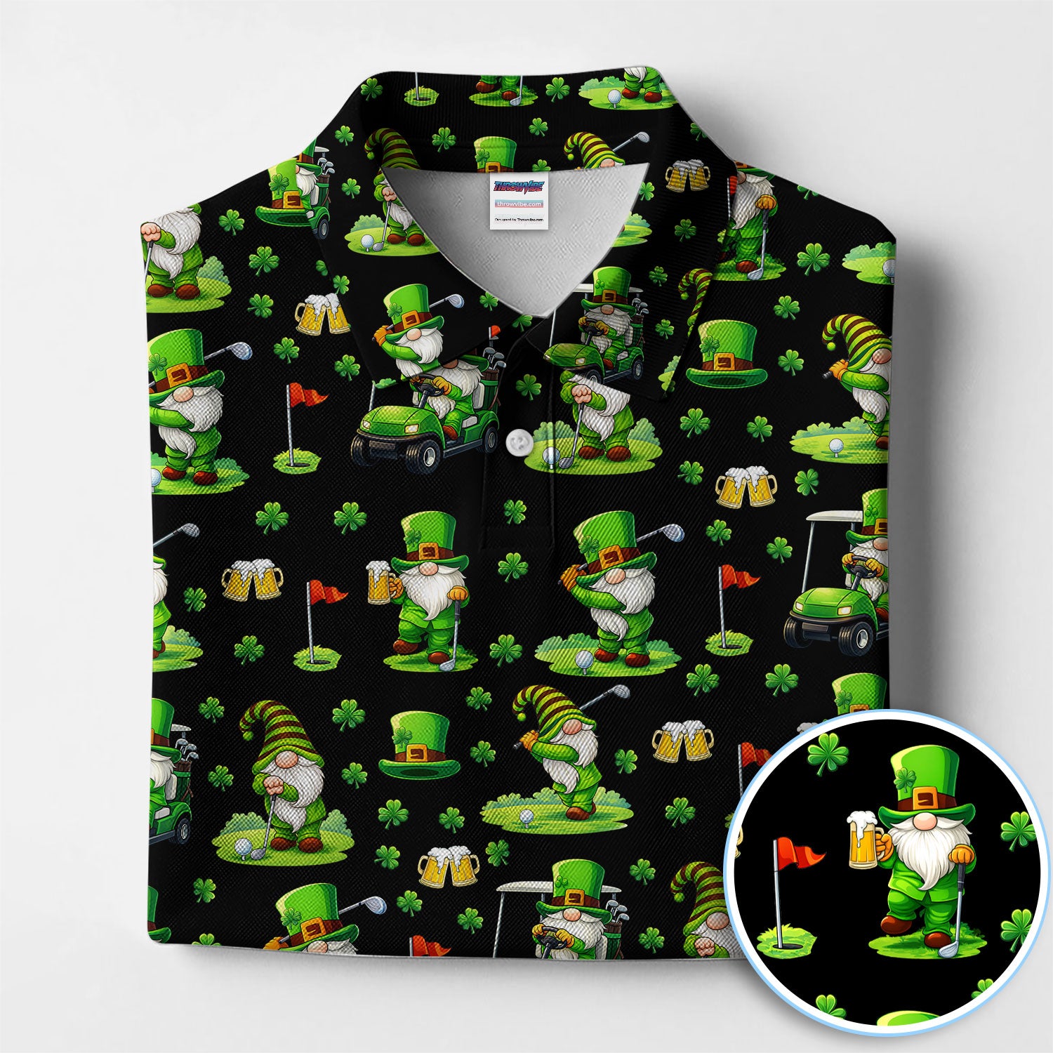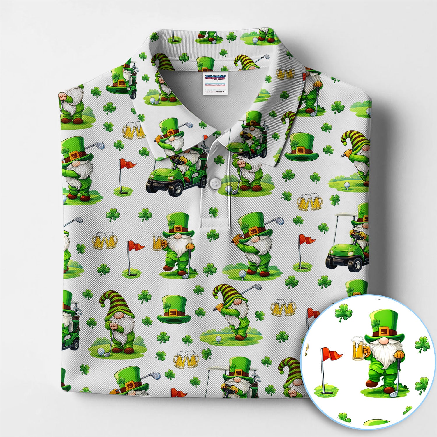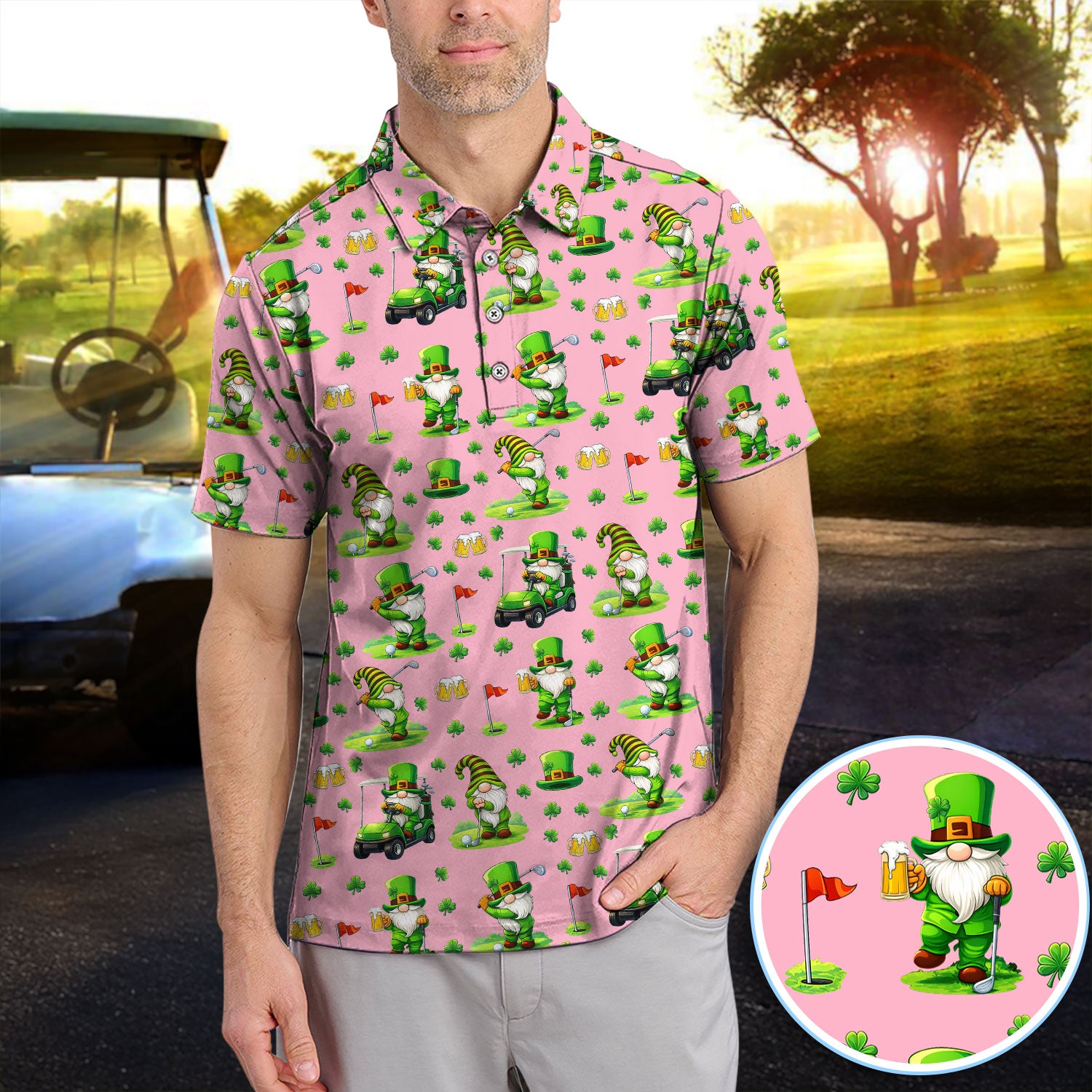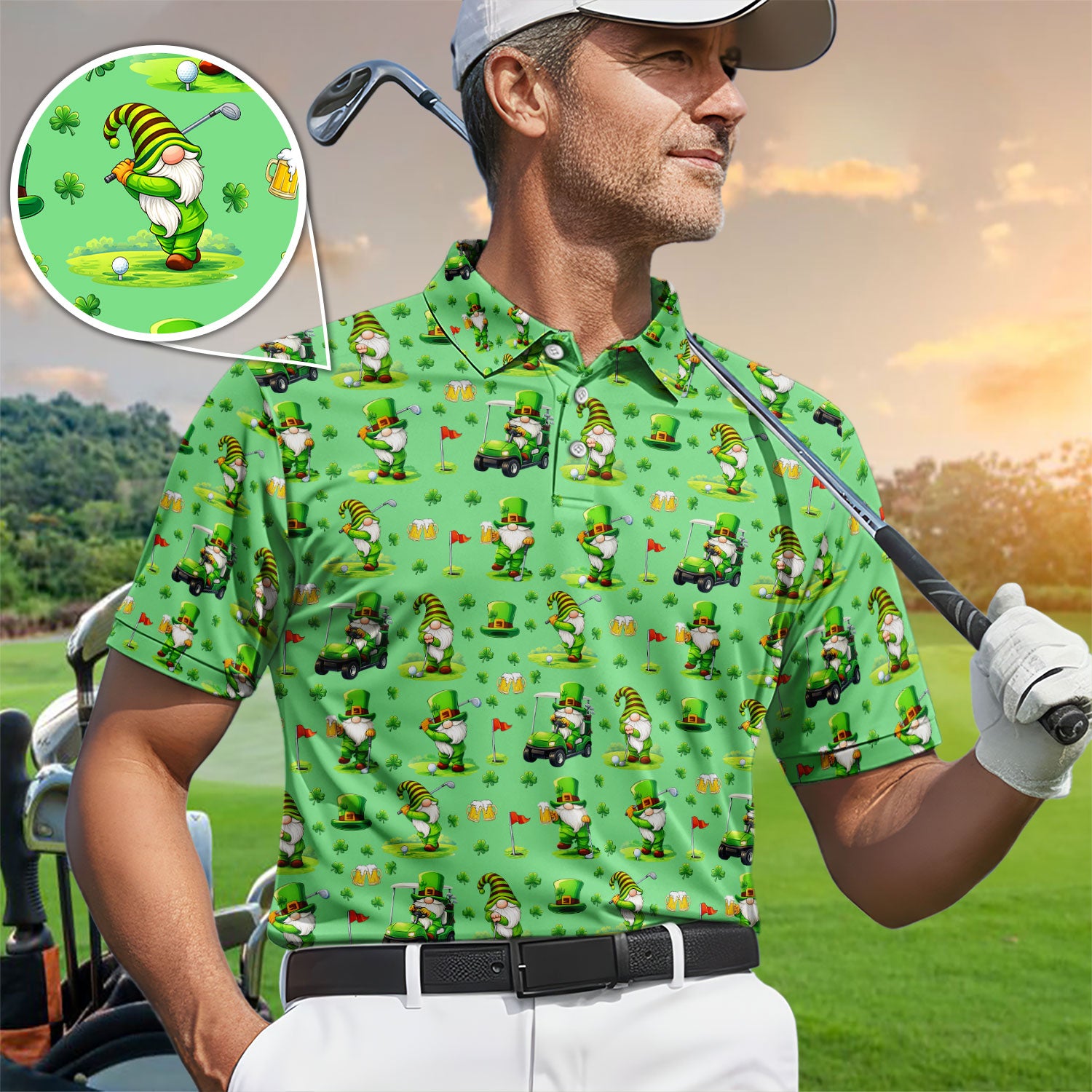 Crazy St. Patrick’s Day Pattern Golf Polos, Leprechaun Golf Shirt For Men, Funny Golf Gift For Golfer