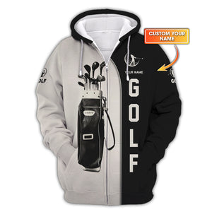 Custom 3D Golf Shirt – Black & White Vintage Golf Bag Design, Personalized Golf Apparel, Golf Gift