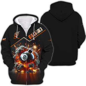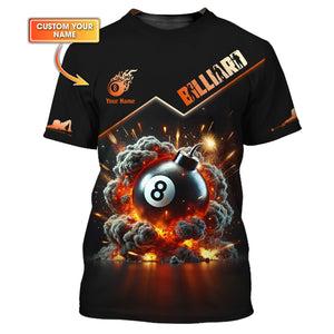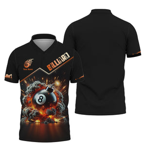 Custom 8-Ball Bomb Explosion & Smoke 3D Effect T-Shirt, Billiards Polo Shirt, Gift For Billiards Players