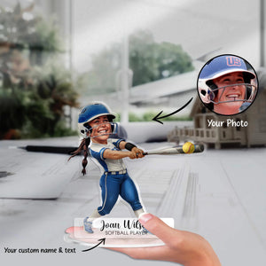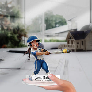 Custom Baseball Player Figurine Trinket Caricature Portrait Desk Name Plate, Personalized Acrylic Cartoon Sport Baseball Athlete Plaque Gift