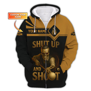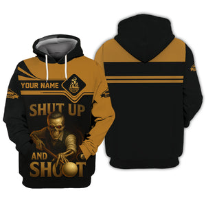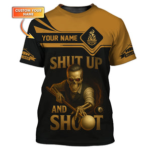Custom Billiard Shirt – Grim Reaper Skeleton Design – Shut Up and Shoot Pool Tee