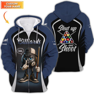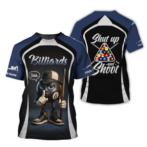 Custom Billiards Jersey, 8 Ball Pool Shut Up and Shoot Billiards T Shirt, Gift For Billiards Player