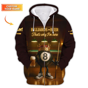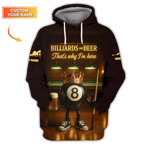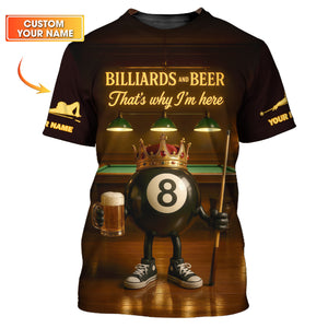 Billiards and Beer That Why I'm Here T Shirts, 8 Ball Pool Beer Crown Pool Tee Team