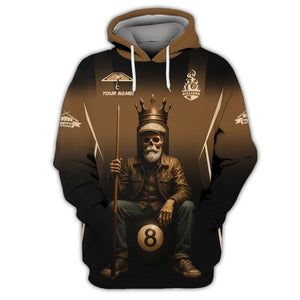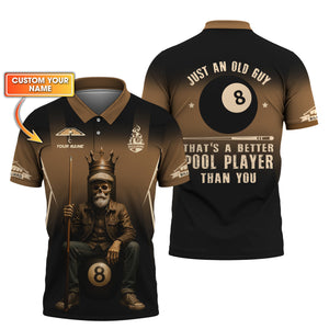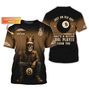 Billiards T Shirt Old Man Skeleton, 8 Ball Pool King Tee Custom