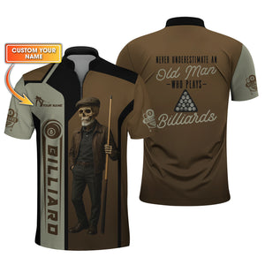 Custom Billiards Shirt, Skeleton Pool T Shirt, Never Underestimate Old Man, Gift For Billiards Player