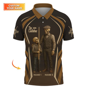 Billiards T Shirt The CueFather Skeleton Pool Player Tee Brown Father Son Gift for Dad