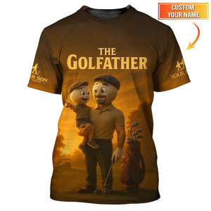 Custom Brown Golf Dad Shirt – The Golfather Father Son Golf Sunset Scene Tee