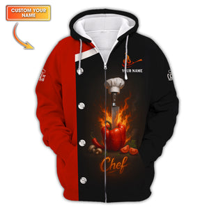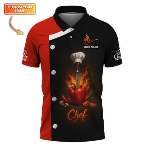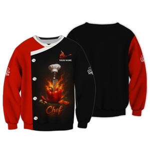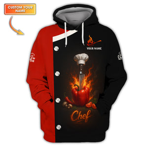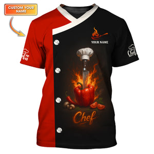 Custom Chef Shirt, Personalized Chef Uniform With Knife & Pepper Fire Design for Cooking Lovers