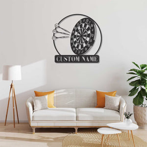 Custom Dartboard Wall Metal Sign – Personalized LED Light for Darts Players – Game Room Bar Decor