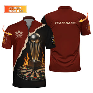 Custom Darts Champion Shirt β Flaming Trophy Design β Red Black Dartboard T-Shirt for Players