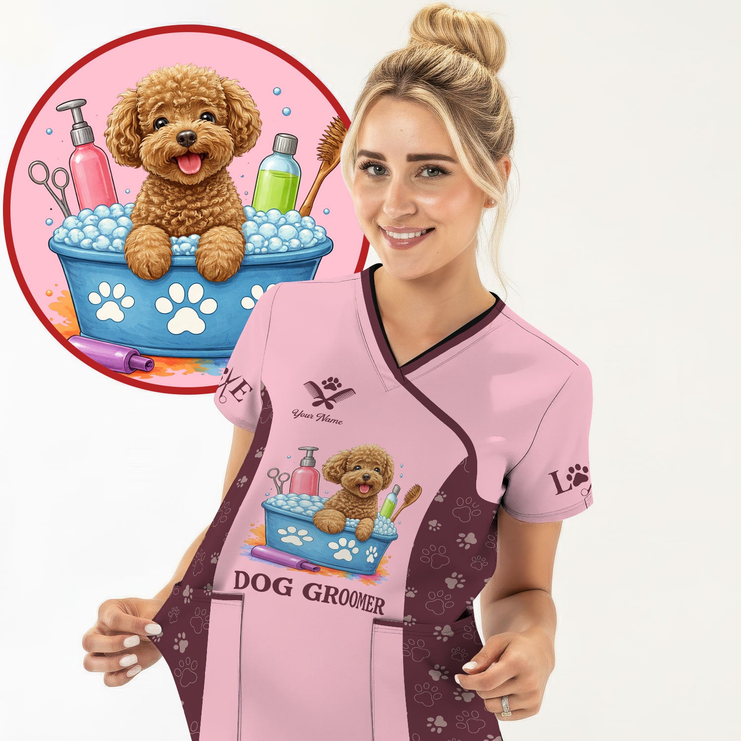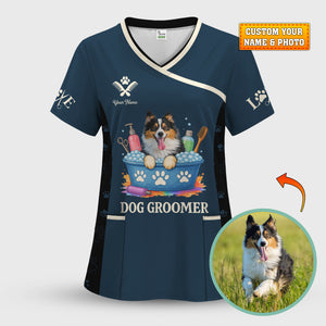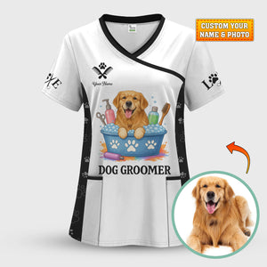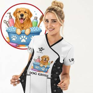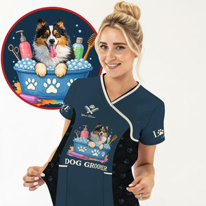 Custom Dog Grooming Shirts for Women, Personalized Groomer Uniform, Gift For Dogs Lover