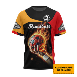 Custom Handball Fire Hand T-Shirt 3D Design Name And Number, Lightweight Sportswear, Gift For Sports Fan