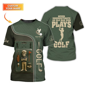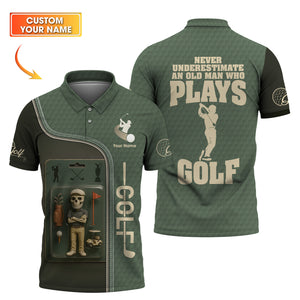 Custom Golf Shirt, Never Underestimate An Old Man Who Plays Golf Skull, Funny Golf Shirt, Father's Day Golf Gifts