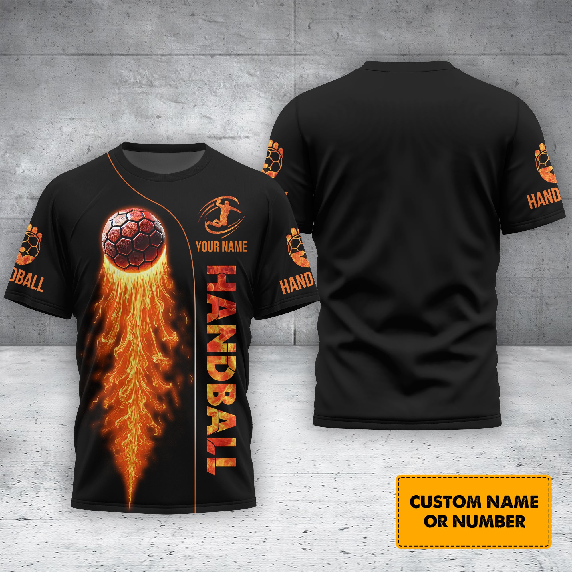 Handball Fireball T-Shirt 3D Design Custom Name, Lightweight Sportswear, Gift For Sports Fan