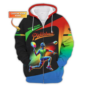 Custom Pickleball Player With Multicolor Effect T-Shirt, Gift For Pickleball Fan