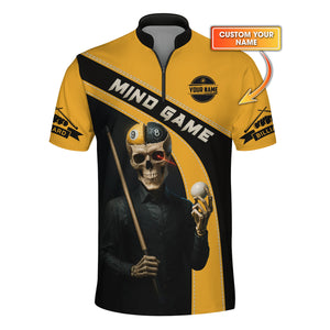 Custom Name Billiard Shirt – Skeleton Skull Design – Mind Game 9 Ball Pool Tee