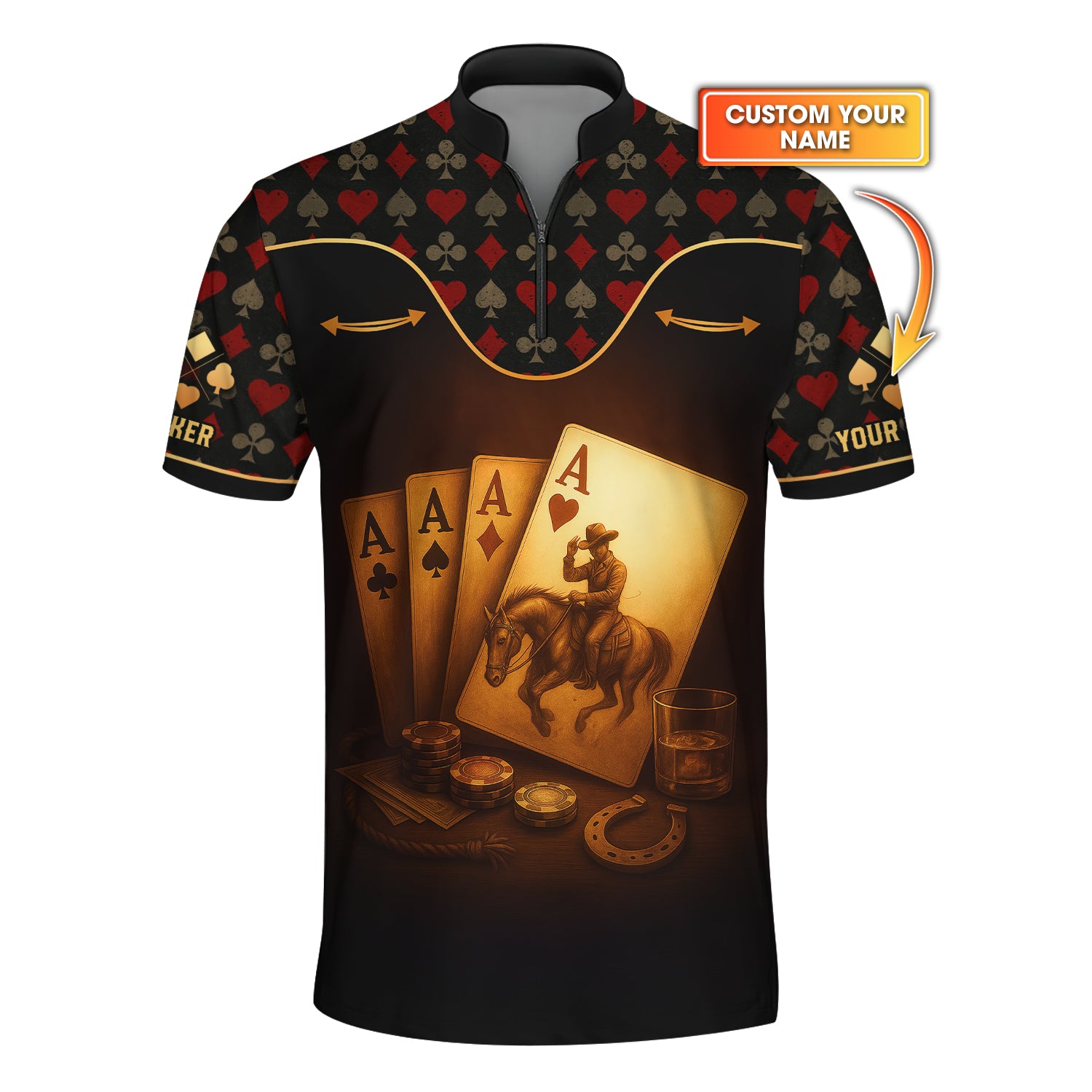 Custom Name Cowboy Poker Polos, Texas Hold Em Shirts, Funny Poker T-Shirt For Men's