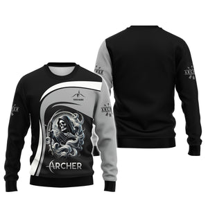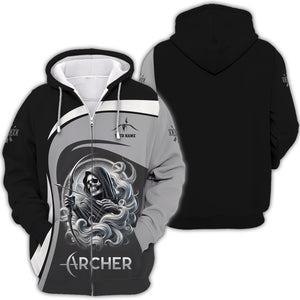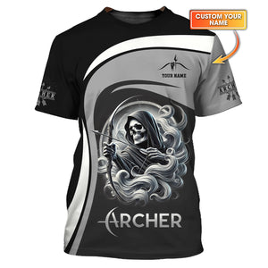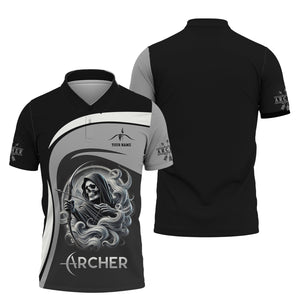 Custom Name Death Archer T-Shirt 3D, Archery Polo Shirts, Lightweight Sportswear, Gift for Archers