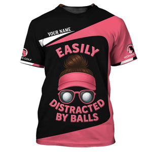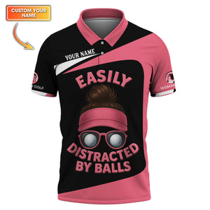 Custom Name Easily Distracted By Balls Polos For Women's, Golf Shirt For Golfer, Funny Golf Shirts