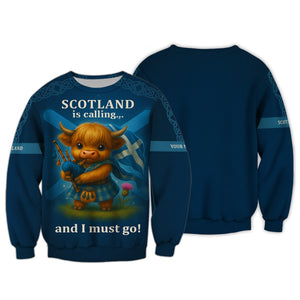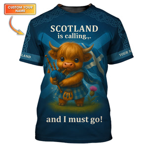 Custom Name Highland Cow Shirt, Scotland Is Calling And I Must Go, Scotland Shirt For Scottish Lover
