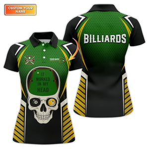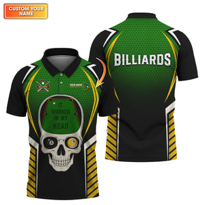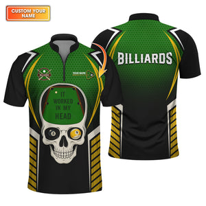 Custom Name It Worked In My Head Billiards Shirts, Funny Skull Pool Jersey For Men, Billiard Tee Shirt