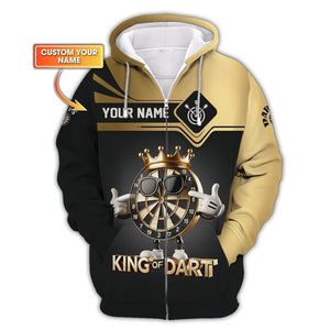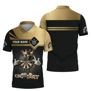 Custom Name King of Darts T Shirt, Gold and Black Cool Dartboard, Gift For Darts Lovers
