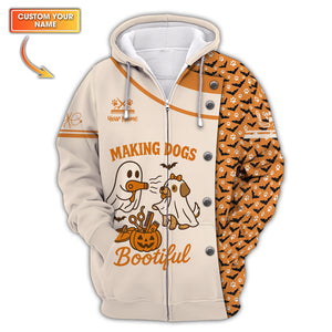 Custom Name Making Dogs Bootiful Ghost Dog Shirt, Halloween Dog Grooming Uniform