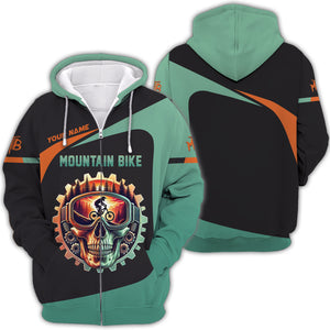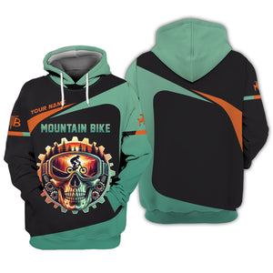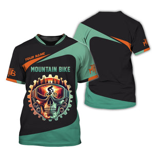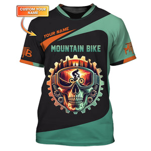Custom Name Mountain Bike 3D T-Shirt With Skullcap Design, Lightweight Sportswear, Personalized MTB Apparel, Gift for Cyclists