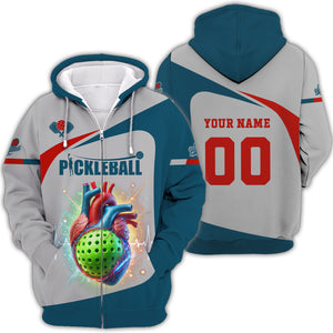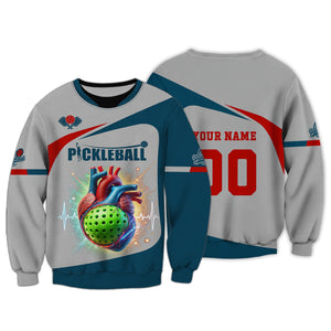Custom Name & Number Design Pickleball 3D T-Shirts Heartbeat, Pickleball Polo Shirt, Gift For Pickleball Player