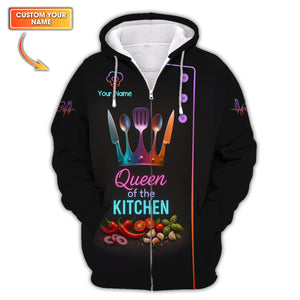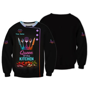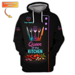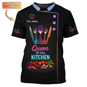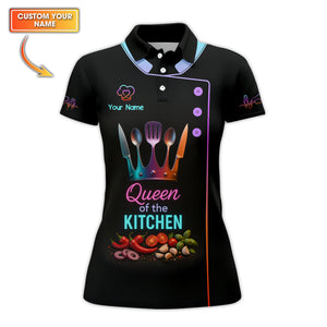 Custom Name Queen of the Kitchen Shirt, Colorful Chef Uniform For Women Cooks