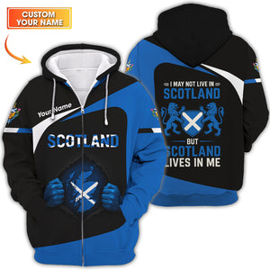 Custom Name Scotland Shirt, I May Not Live In Scotland But Scotland Lives In Me Shirt, Personalized Scottish Shirt For Scottland Lover