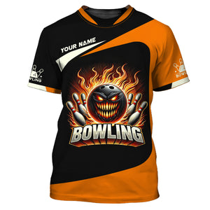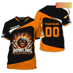 Turn heads on the lanes with this personalized bowling T-shirt featuring a dynamic flaming pins design! Perfect for tournaments, leagues, or casual games, this lightweight and breathable sportswear offers unmatched comfort and style. 🎳🔥 Add your name or team logo for a professional and standout look. A great gift for bowlers to elevate their game and style!