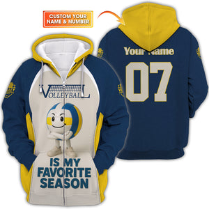 Custom Name Volleyball Shirt – Funny Yellow Blue Jersey “Favorite Season” Quote