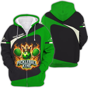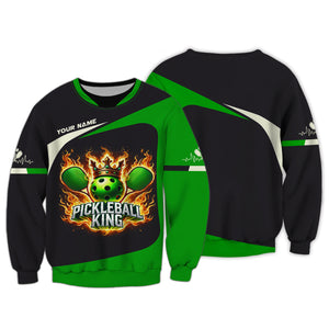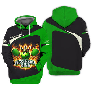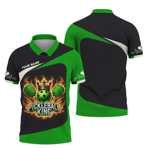 Custom Pickleball King Fire, Player Personalized Name 3D T-Shirts, Pickleball Polo Shirt, Gift For Pickleball Player