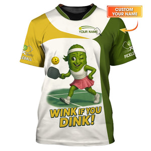 Funny Pickleball Shirt – Wink If You Dink Quote -Custom Name Tee with Cute Pickle Character