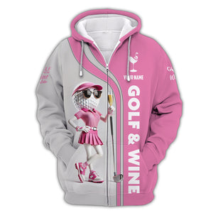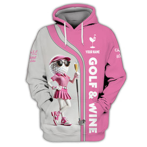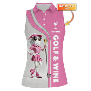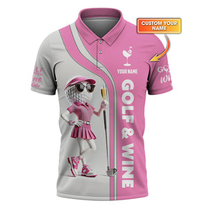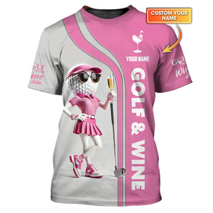 Golf & Wine Women Golf Shirts, Custom Golf Ball Lady, Golf Polos for Players