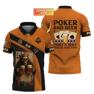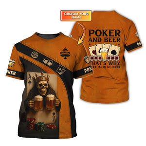 Custom Poker and Beer Shirts, Poker Skeleton Funny Custom Name Shirt for Men, Poker Gift for Lover
