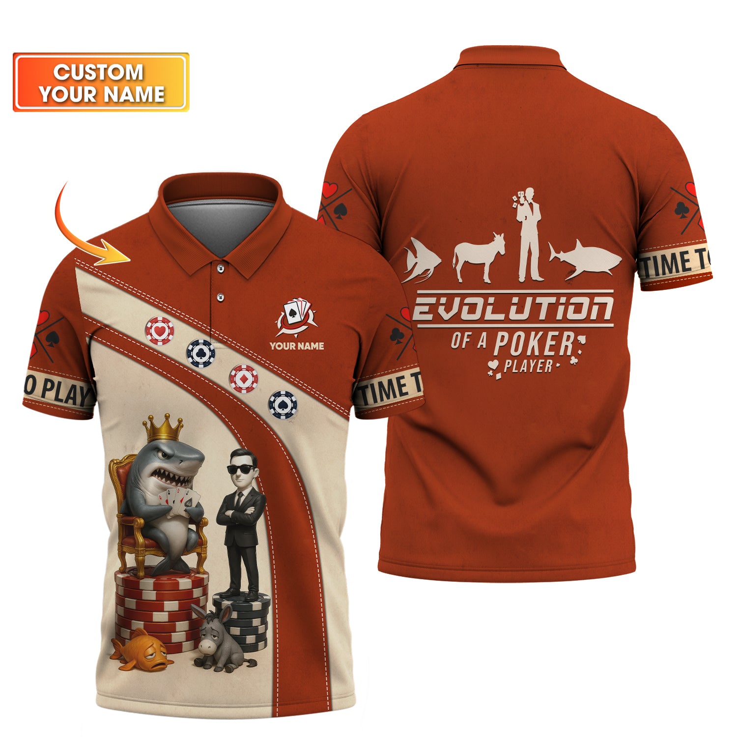 Poker T Shirt, Evolution of a Poker Player Tee Custom Funny Shark & Donkey Design