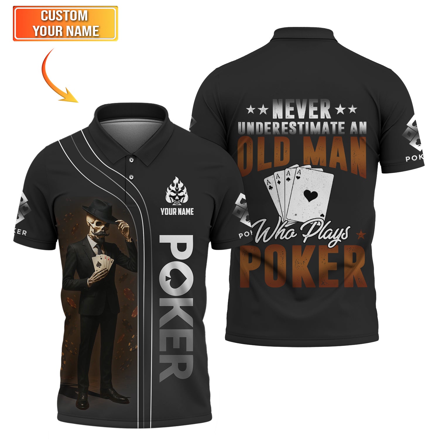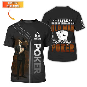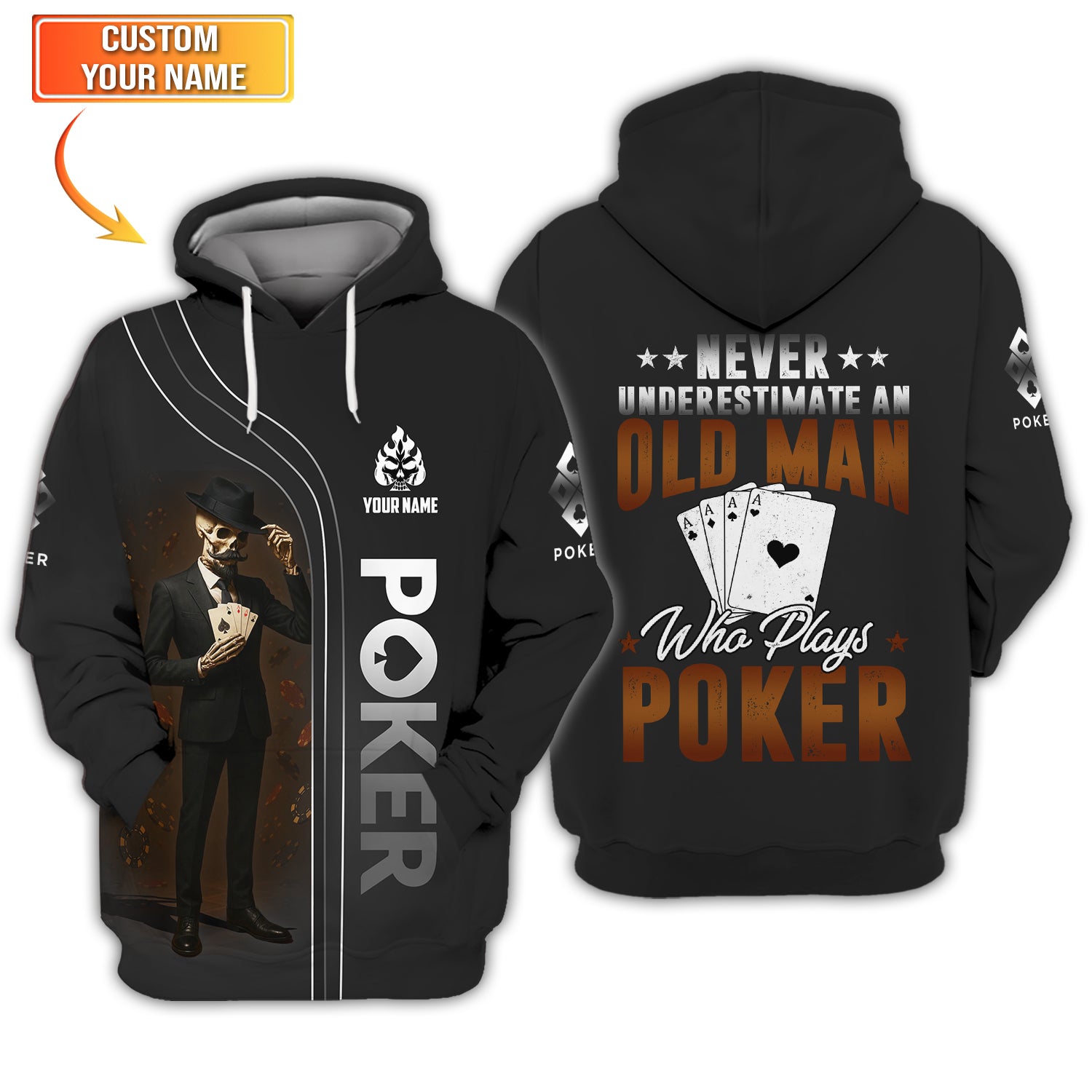 Poker T Shirt Never Underestimate An Old Man Who Plays Poker Skeleton Card Player Black Tee