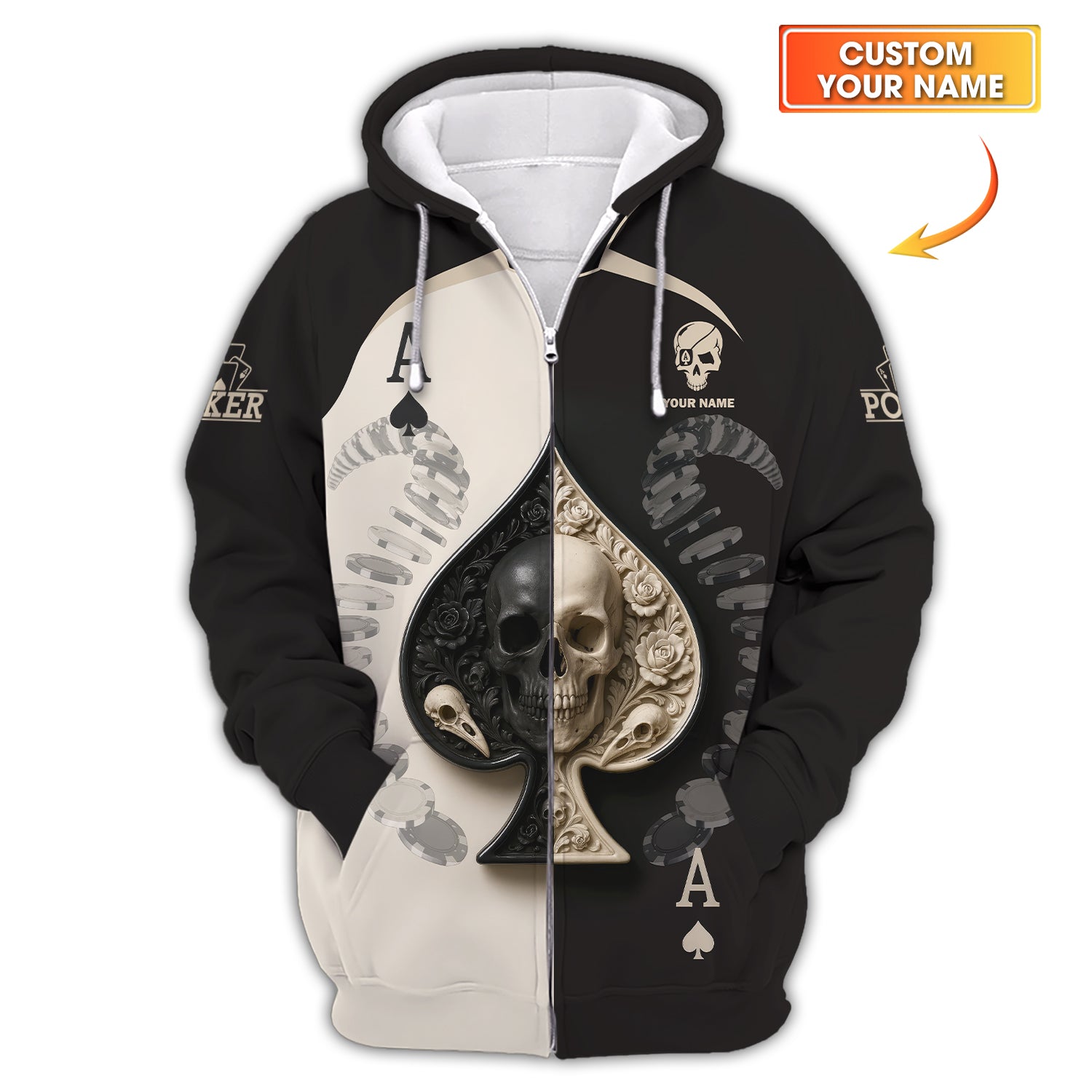 Custom Poker Shirt, Skull Spade Card Tee Black White Casino Style Gifts Poker Player