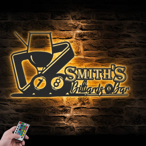 Custom Pool Metal Sign LED Wall Art, Billiard Sign Wall Decor For Game Room Or Bar