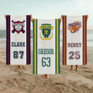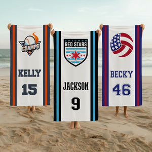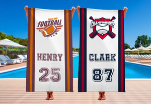 Custom Sport Team Beach Towel, Personalized Football Volleyball Basketball Baseball Softball Soccer Logo Beach Towel, Pool Party Towels