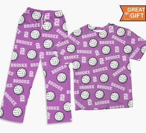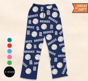 Custom Sports Pajama Pants With Name, Personalized Volleyball Pajama Pants for Family, Team Gift for Baseball Player