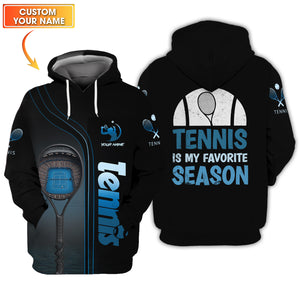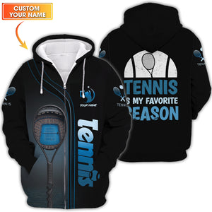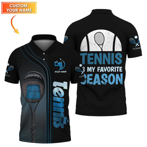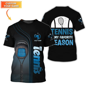 Custom Tennis Shirt | Black Blue Stadium Court Design | Favorite Season Quote Tee