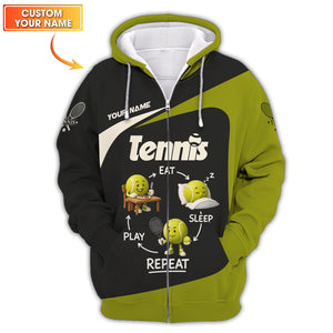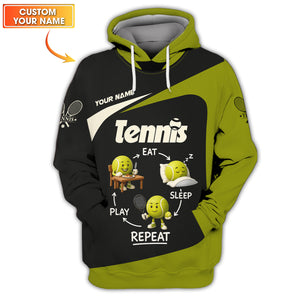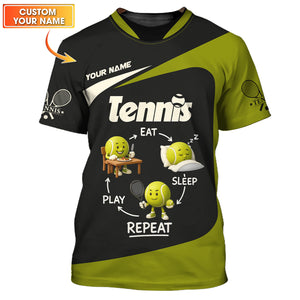 Custom Tennis T Shirt, Funny Eat Sleep Play Repeat Tennis Ball Tee Lover Gift