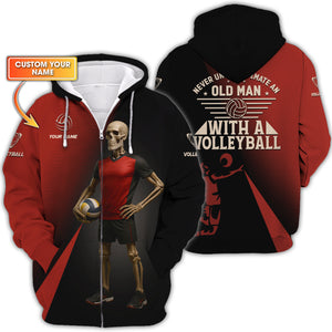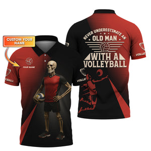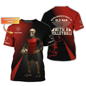 Custom Volleyball Jerseys, Never Underestimate Old Man Volleyball T Shirt Black Red, Volleyball Gift