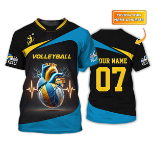 Custom Volleyball Shirt – Blue Heartbeat Design – Personalized Jersey with Name and Number