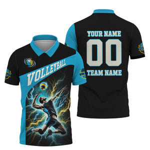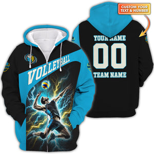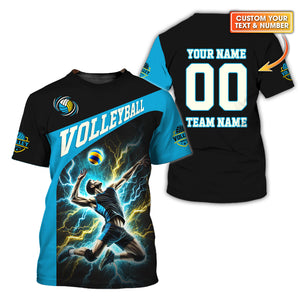 Custom Volleyball T-Shirt – Male Athlete Spiking with Lightning, Volleyball Jersey, Volleyball Gift