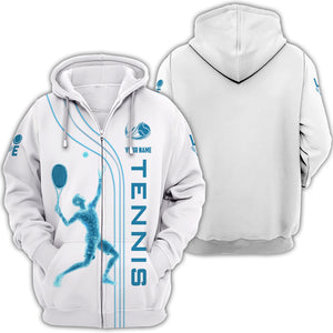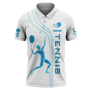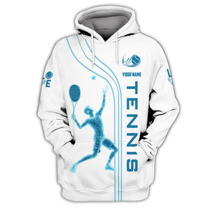 Custom White & Blue Tennis Shirt – Futuristic Hologram Player Design – Personalized Athletic Tee for Tennis Lovers