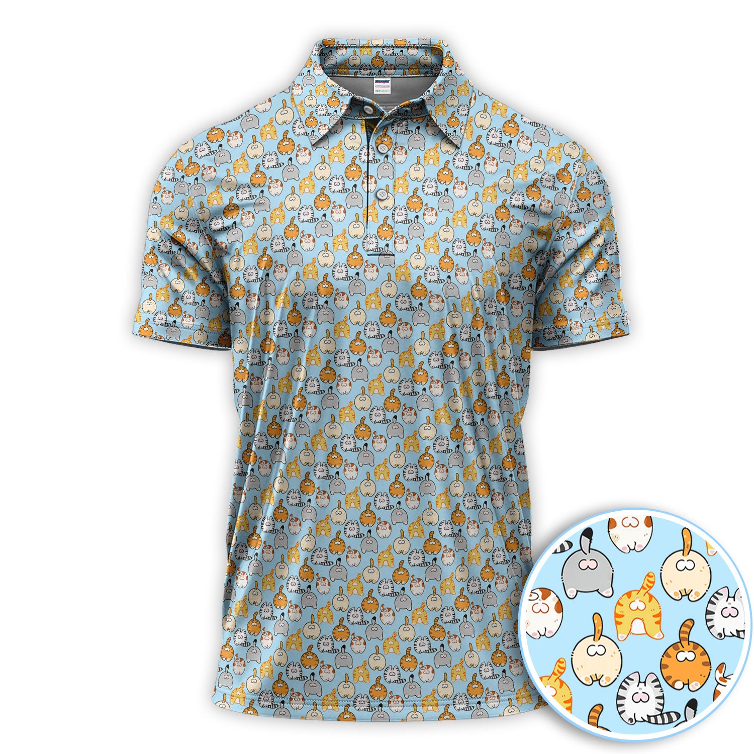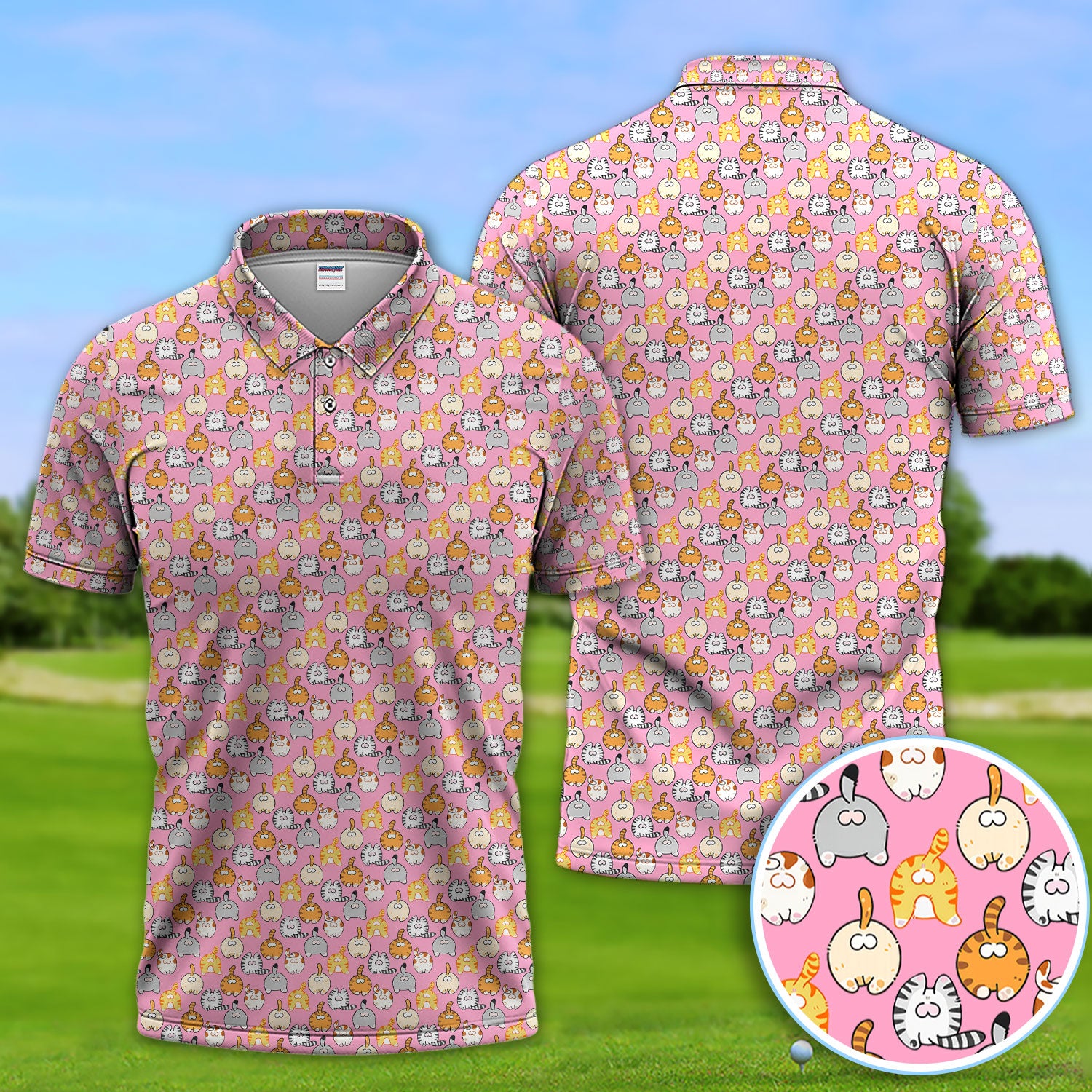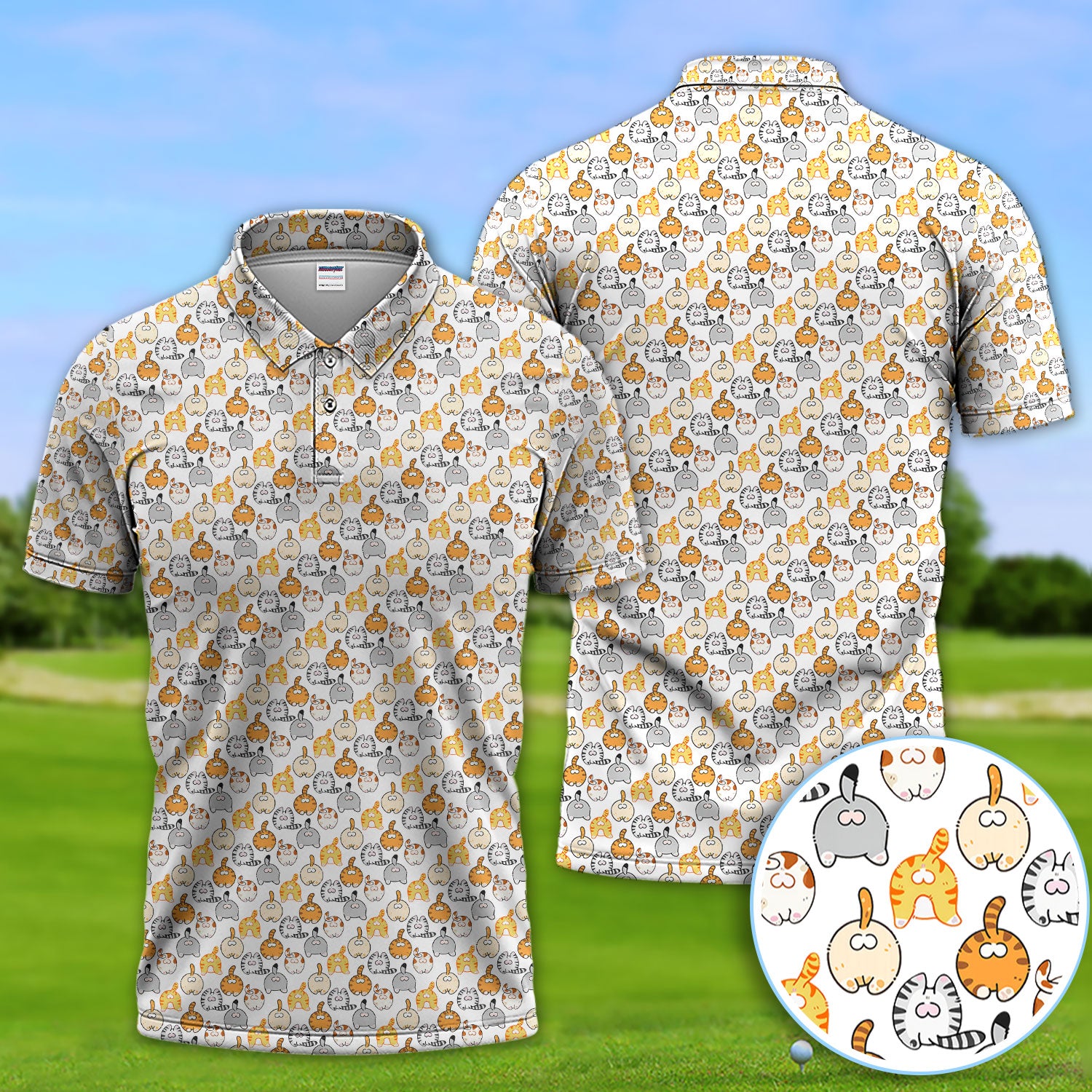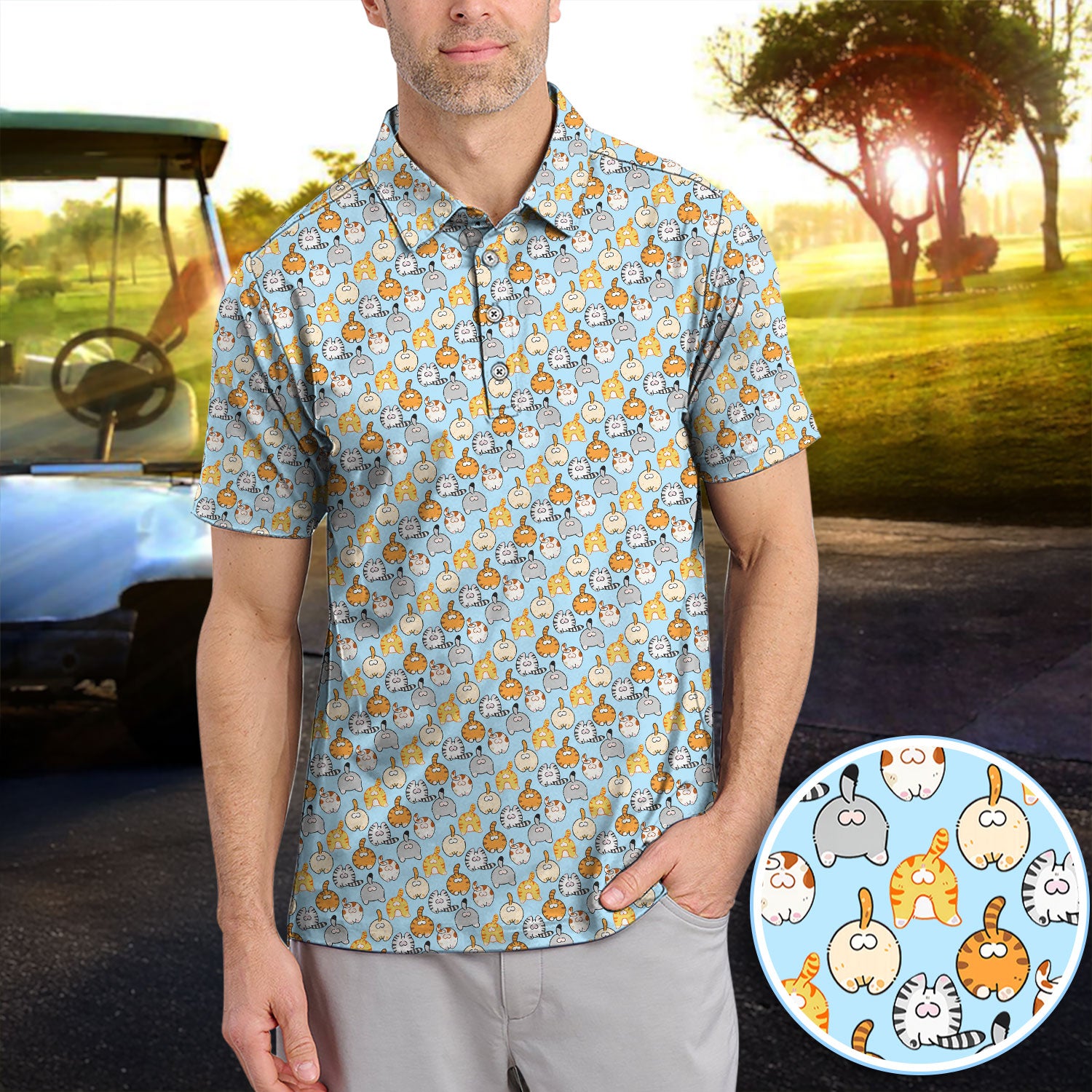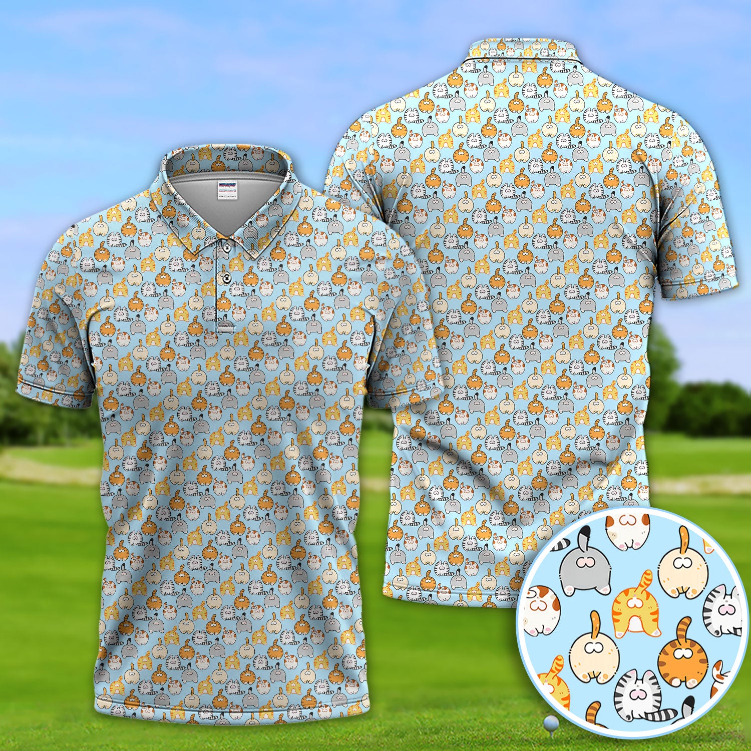 Cute Cat Butt Golf Polos, Pet Pattern Golf Shirt For Golfer, Golf Gift For Men